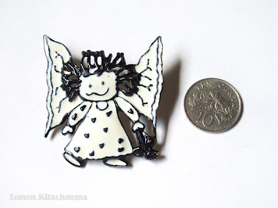 RETRO SFJ ENAMEL CHILD WITH WINGS BROOCH