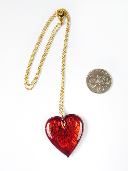 RED HEART DICHROIC GLASS PENDANT NECKLACE