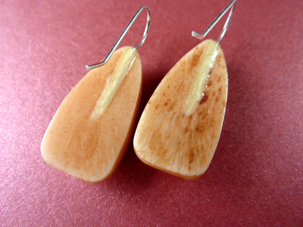 Unworn stock on card. Aging on the goldtone. Plastic navettes in salmon-peach and black, surgical steel posts. It still has it's price tag which was US$8.00 then.