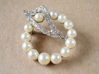 Pierced earrings. Faux pearls have surface scratches from storage, everything else looks ok. Rhinestones still sparkling.