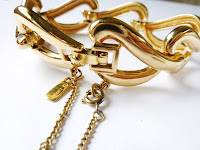 Very good condition, very minor aging, does not look worn very much if at all. Goldtone leaf motif linked bracelet, foldover clasp. 1960s-70s.
